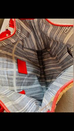 Coach M1269-22906 Bleeker Millie Large Natural Straw Coral Leather Trim Hobo Bag Purse