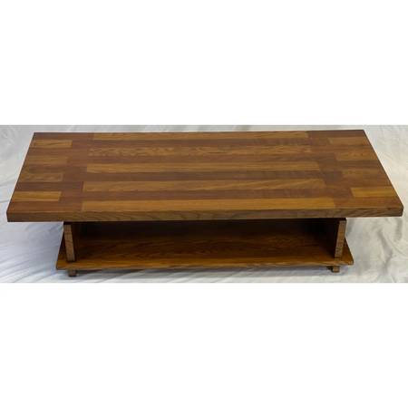 Beautiful vintage Lane MCM coffee table with a Japanese-inspired architectural base and a parquet/fretwork wood top. Solid, heavy, and very well made — a true mid-century statement piece.