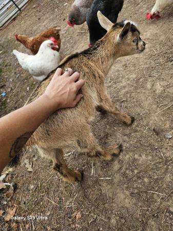 Bought these goats to clean up vegetation around the property. They did a great job. Pictures starting with buck, buck, doeling, doeling, female kid. Doelings most likely pregnant. All goats are friendly. Great with kids and all animals.