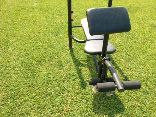 No cuts, no tears, and no rips on the bench. It is a little sun faded by the head because it sat by a window. You can do flat bench and incline bench, seated leg curl and leg extension, and preacher curl.